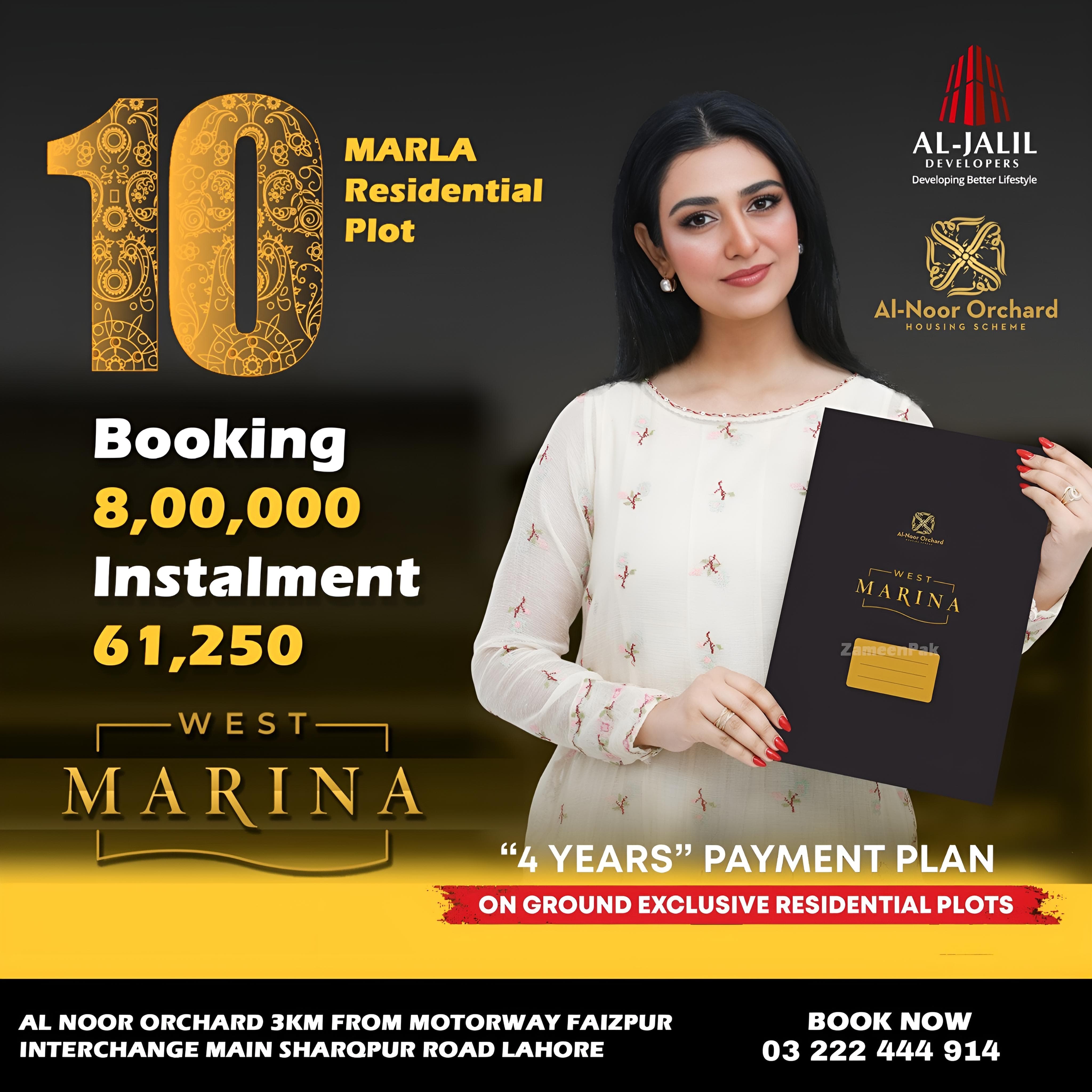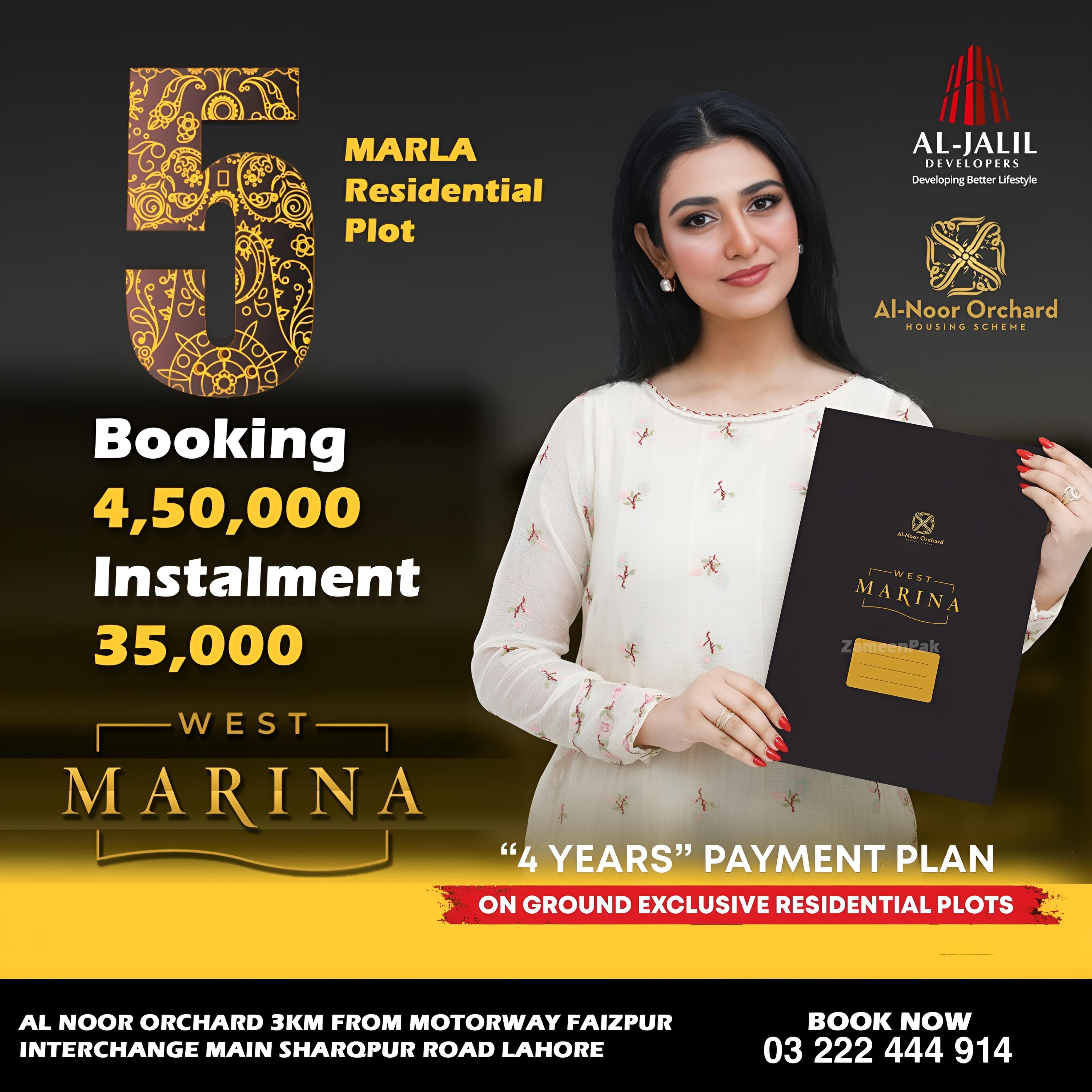 West Marina, part of Al-Jalil Developers' Al-Noor Orchard project in Lahore, has launched a new deal offering exclusive residential plots for investment and development. This new deal features on-ground plots with ready possession, making it an ideal opportunity for homeowners and investors. The development boasts modern infrastructure, world-class amenities, and a focus on sustainability. Residents will enjoy access to green spaces, schools, hospitals, shopping centers, and recreational areas. With enhanced connectivity and prime location in Lahore West, West Marina promises long-term value, offering a promising investment in a growing, thriving community.